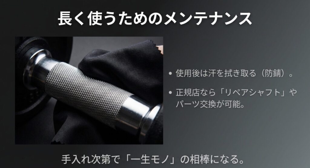 最も大切なのは、「使用後に乾いた布で汗を拭き取る」という単純な作業です。
