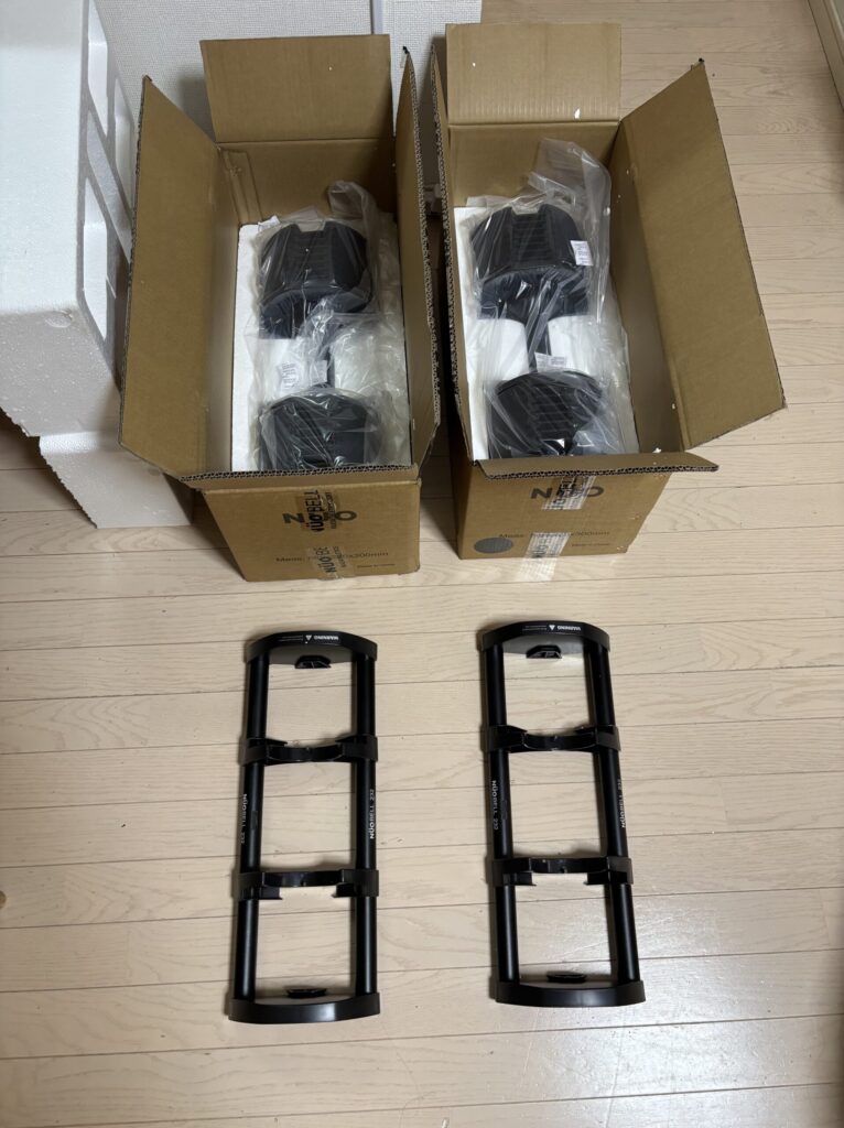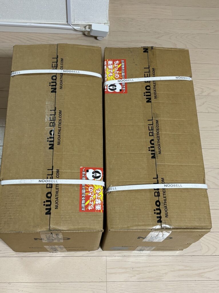 実際に注文すると、写真のようにかなり頑丈な段ボール2箱で届きます。1箱30kg以上の重量があるため、配送スタッフの方には感謝しかありませんが、梱包状態からも製品の「精密さ」を守ろうとする意志が伝わってきました。